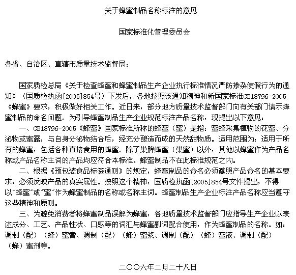 關(guān)于蜂蜜制品名稱標(biāo)注的意見