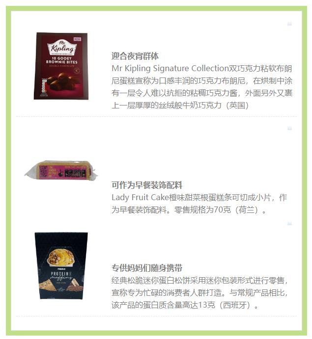 品牌可以利用小規(guī)格蛋糕幫助消費(fèi)者控制卡路里攝入量,獲得適度縱享,同時(shí)也可以鼓勵(lì)新的消費(fèi)場(chǎng)景——例如下午茶或夜宵點(diǎn)心。