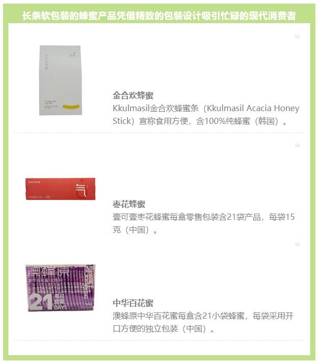蜂蜜新品中的長(zhǎng)條軟包裝出現(xiàn)增長(zhǎng)